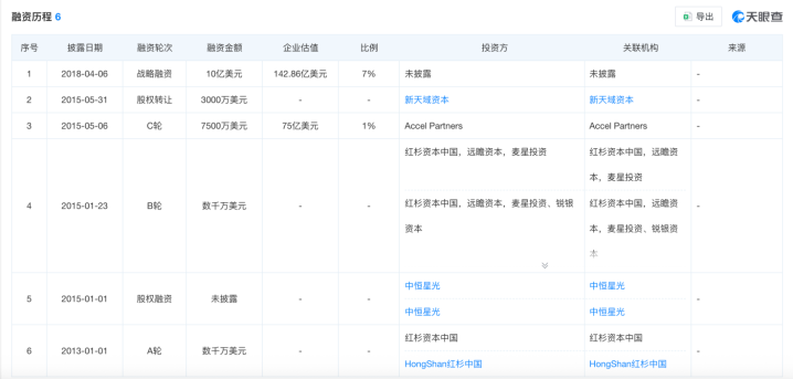 天眼查数据显示,大疆创新在2013年1月到2015年5月完成了5次融资,融资金额多的达7500万美元,少的也在数千万美元。投资方包括红杉资本中国、远瞻资本、麦星投资、中恒星光、新天域资本、AccelPartners等。